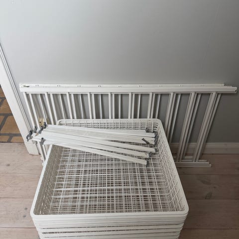 Säljer ett klassiskt och rejält Elfa-stativ i vitt utförande. Systemet är i mycket gott skick och perfekt för organisering i garderoben, tvättstugan eller hallen.