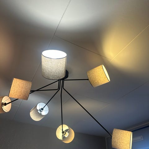 Taklampa från Bauhaus. 100cm lång. Cylindrar ca 15cm höga. Nypriset låg på ca 1200kr. Säljes nu för 300kr.