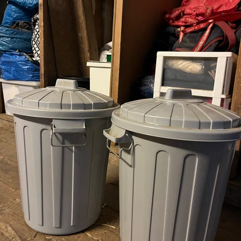 Soptunnor med lock i svart plast i mycket bra skick. B51xH85xD56 cm
