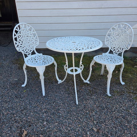 Klassisk café- eller altangrupp i vit gjuten aluminium – 5 delar