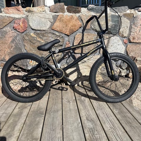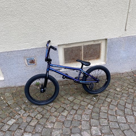 Wethepeople BMX-cykel i unisexmodell med hjulstorlek 20". Cykeln har svart ram med ljusa däck, rakt BMX-styre och enkel broms fram, bromsklossar måste bytas. Bra BMX cykel för trickkörning. Pegs sitter på där bak och två till följer med om man vill ha där fram. Sadel och pedaler är standardmodeller anpassade för BMX-bruk. Svarta däck följer också med. Cykeln funkar finfint förutom bromsklossarna.