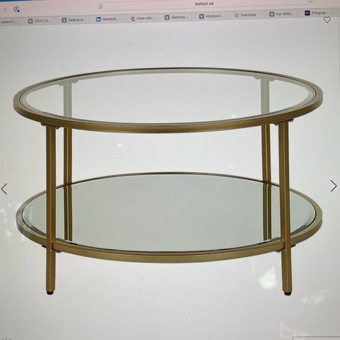 IKEA ARKELSTORP soffbord med klaffar. Bordsskiva i trä med svart underrede. Mått ca 65x140x52 cm enligt produktbild. Bordet har en låda under bordsskivan samt en hylla för extra förvaring. Klaffarna kan fällas upp eller ner för att anpassa bordets storlek efter behov, vilket gör det lämpligt som soffbord i vardagsrum eller mindre utrymmen där flexibel bordsyta önskas.