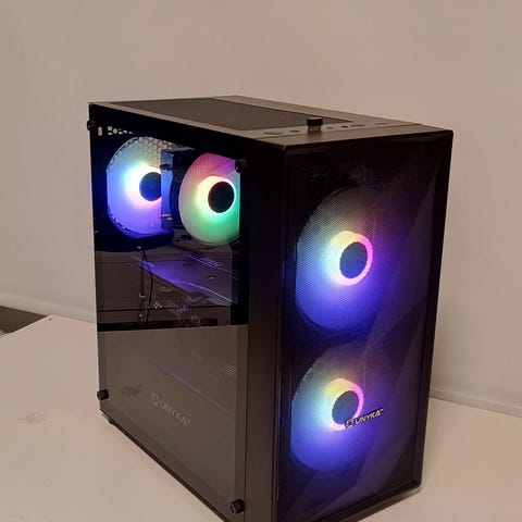 HP Omen stationär dator med sidopanel i glas och invändig RGB-belysning. Datorn är utrustad med Nvidia GeForce RTX 4070 grafikkort och 16 GB RAM-minne. Operativsystemet är Windows 11 Home. Chassit är i svart färg med Omen-logotyp på fronten. Lämplig som stationär hemdator för krävande program och spel där dedikerat grafikkort och större mängd arbetsminne behövs.