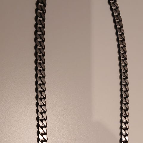 halsband för kvinna i svart pärlmodell. Halsbandet består av runda, glansiga kulor i ett syntetiskt material med metallfärgat lås. Längden framgår av måttbandet på bilderna och halsbandet kan bäras både till vardag och vid mer uppklädda tillfällen.