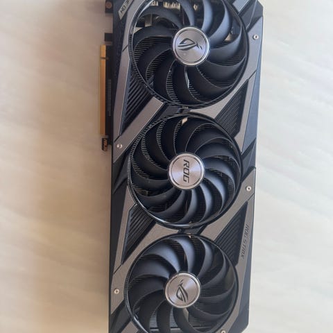 Palit GameRock GeForce RTX4080 grafikkort med trippelfläktskylning. Kortet är utrustat med tre stora fläktar på framsidan och en bakplåt i metall med GameRock-logotyp. Passar stationära datorer med PCI Express-anslutning och är avsett för användning i system som kräver ett dedikerat grafikkort för bild- och videoutgång samt grafiktunga applikationer och spel. Kontrollera exakta specifikationer som minnesmängd, RTX-modell och strömkrav mot tillverkarens information eller märkning på kortet.
