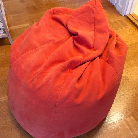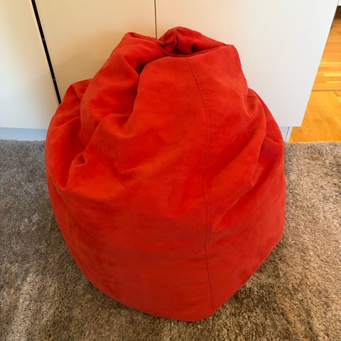 Säljer en klassisk Sacco-säck från välkända Ekornes. Den perfekta möbeln för spelhörnan, barnrummet eller som en extra skön plats att läsa en bok i. Den är mjuk, formar sig efter kroppen och är i ett härligt rött tyg som ger rummet lite färg.