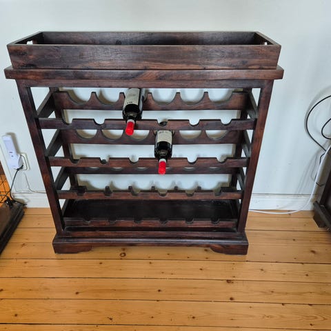 Golv stående vinställ i metall för 28 flaskor.