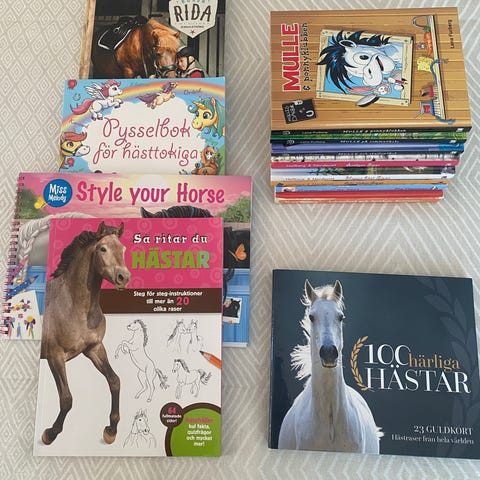 Paket med blandade barn- och ungdomsböcker. Flera titlar med hästtema samt andra kapitelböcker. Böckerna är i pocket- och inbunden utgåva och lämpar sig för barn i låg- och mellanstadieålder som lästräning eller fritidsläsning.