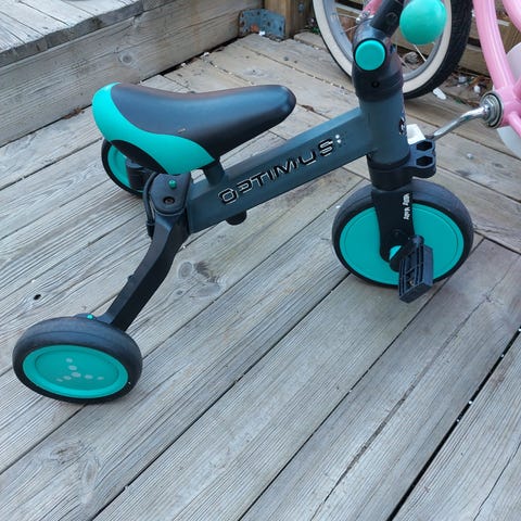 Extra stabil springcykel för de minsta! Fyrhjulingen är perfekt för att öva balans och koordination. Kan användas inomhus och utomhus. Väldigt fint skick då den använts sparsamt under en kort period