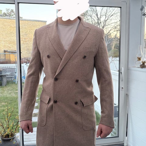 Den har två främre fickor och två inne fickor. Den rä i bra skick men saknar bältet.