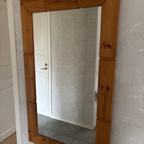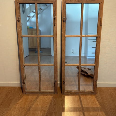 Vintage spegel / fönsterspegel. Ram och spröjs i brunlaserat trä.