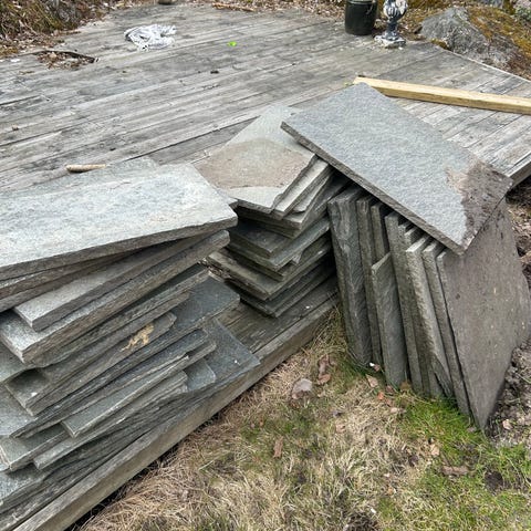 Bitar av fönsterbrädor i marmor