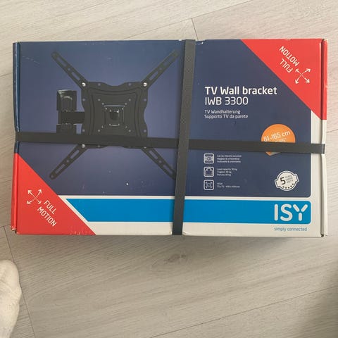 Exibel väggfäste för TV i svart metall. Fästet har en X-formad VESA-platta och ledad arm för montering av platt-TV på vägg. Passar TV-apparater med kompatibelt VESA-mönster inom fästets storleksintervall. Lämpligt för användning i vardagsrum, sovrum eller andra rum där TV önskas monteras på vägg för att spara utrymme och kunna justera betraktningsvinkeln.