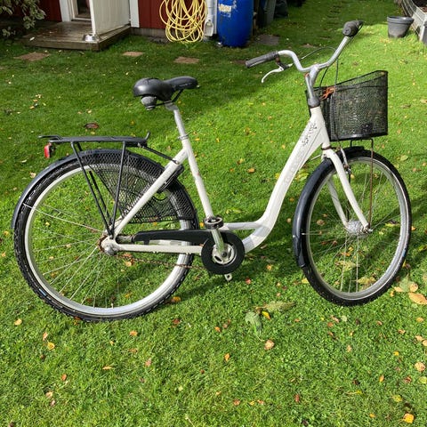 Bra cykel men kan vara lite trög på vissa växlar är lite rostig på korgen.