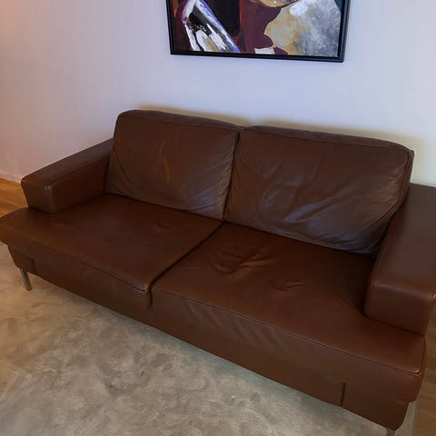 Rös skinnsoffa i väldigt bra skick
