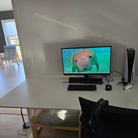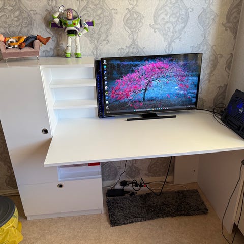 En dedikerad plats för datorskärm, utdragsskiva för mus och tangentbord. Utmärkt för hemma-arbete. Ergonomiskt utformad och med plats för annat.
