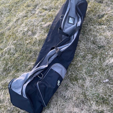 Svart resefodral med hjul. Resefodralet är av mjuk modell med dragkedja framtill och bärhandtag upptill och på sidan. Fodralet har även en kompressionsrem för att kunna hålla bagen kompakt. Hjul och förstärkt botten gör den anpassad för transport av golfbag och klubbor vid resor.
