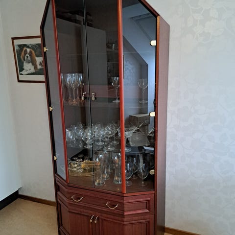 Vitrinskåp i mahogny med gott om plats för förvaring
