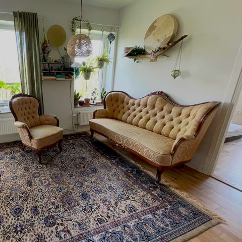 Köpt på Vintageateljen. Säljs pga renovering och passar inte längre. Har finare lyster än vad man ser på bild. Kan skicka fler på förfrågan.
