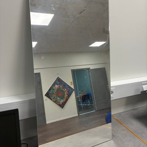 En spegel som har varit på en garderobsdörr. Obs har inte skyddsfolje ovanpå. 45x118 cm (tror!)