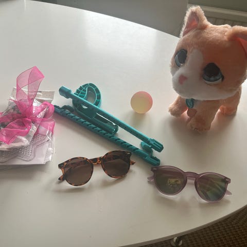 En söt katt som kan jama, blinka, lägga sig på sidan. Den går på batterier. Passar bra till människor med demens.