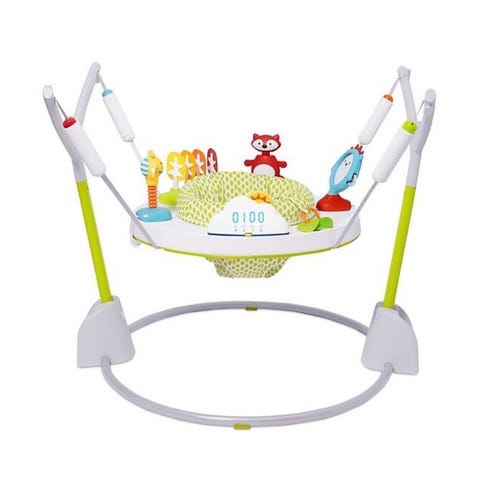 -Sitsen är upphängd i ett ställning med fjädrar som är gör att barnet kan hoppa upp och ner.