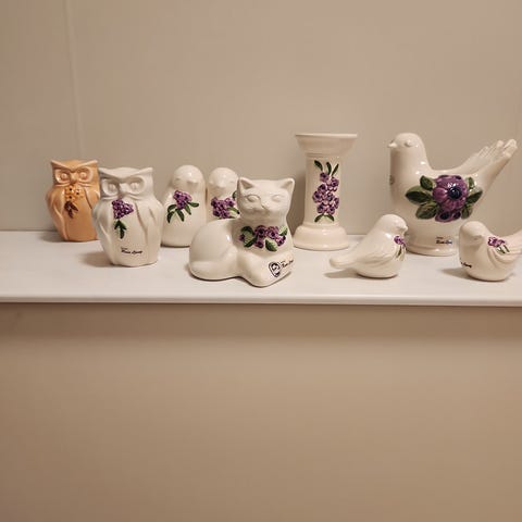 Katter från Rosa Ljung och Guldkroken. Ena blå katten o den vita har lite skav på örat annars i fina skick. Ca 8cm höga.