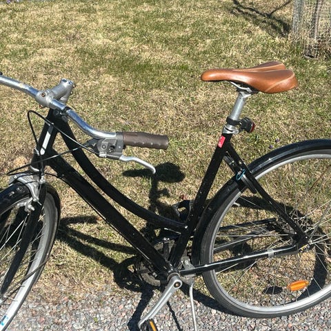 Säljer min mors gamla cykel som fungerar normalt. Växeln sitter i navet, fotbroms och handbroms fungerar bra. Korg på styret. Har förvarats inomhus och inte använts senaste decenniet.