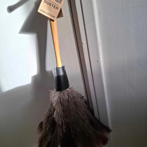 Sop med skyffel från Koziol. Skaftet är en ekorre.