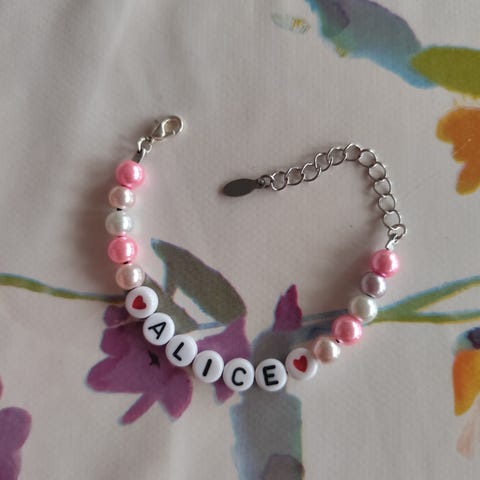 Handgjort armband med namnet Elsa. Perfekt som present till dottern eller till en vän.
