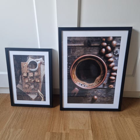 Affisch EAT med text och illustrationer i ram