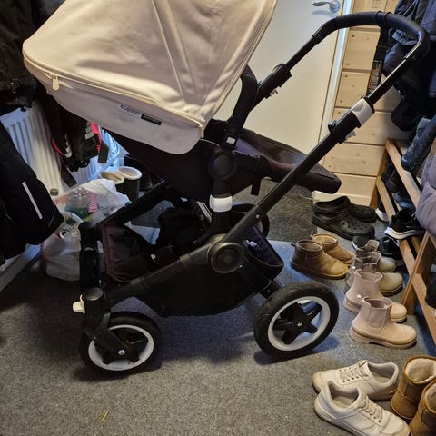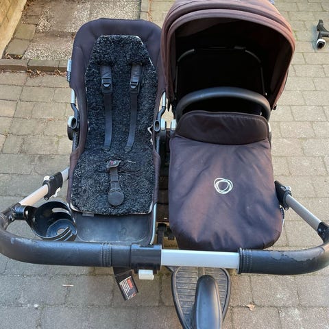 Bugaboo dubbel barnvagn i begagnat skick. Vagnen fungerar fortfarande bra och är praktisk för två barn. Den kan enkelt omvandlas till en enkelvagn vid behov. Medföljer en rymlig varukorg samt liggdel. Perfekt för vardagen trots normalt slitage.