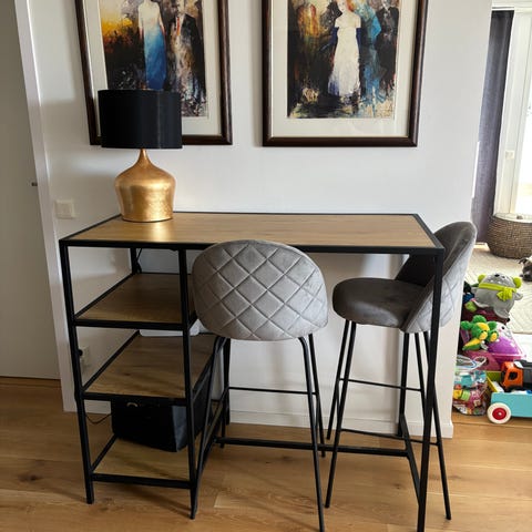 Uppgradera ditt hem med Plaza – ett barbord som förenar skandinavisk minimalism med industriell elegans. Med sin nätta, runda skiva i mattsvart MDF och karaktäristiska utsvängda ben i metall, blir det ett sofistikerat blickfång i rummet.