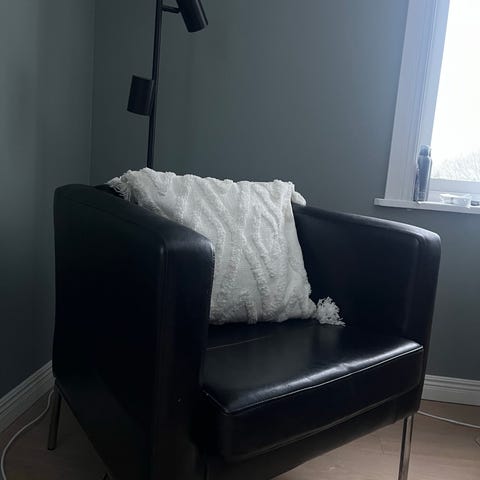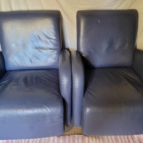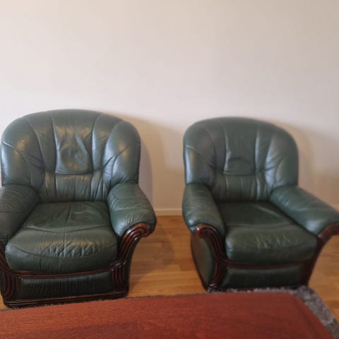2 utmärkta skinnfåtöljer. Hämtas på plats. Hund i hemmet. Oskadade