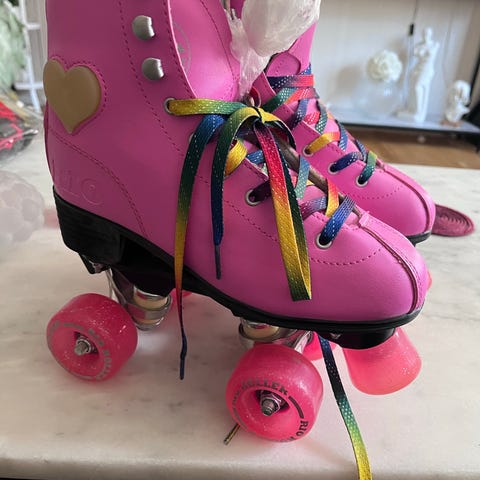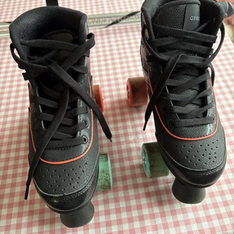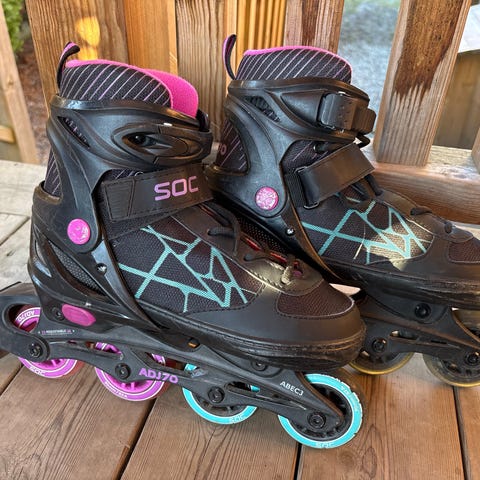 Salomon rullskridskor för dam i storlek 37 (23,5 cm). 4 hjul i rad med broms bak på ena skridskon. Färgkombination i blått, vitt, grått och svarta detaljer. Passar för inlinesåkning och träning på asfalt eller andra släta underlag. Jag kan inte minnas att de har använts någon gång.