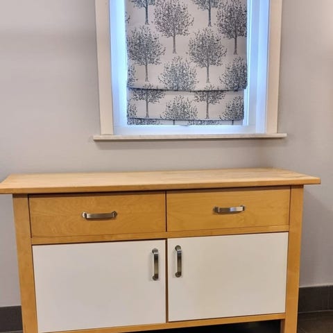 Vackert Ekskåp med två vitriner, fyra lådor och några öppna hyllor . Allt i bra skick