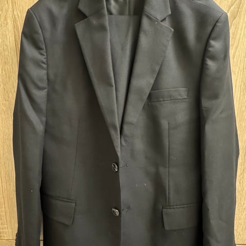 Svart kostym i bra skick, bara använd en handfull gånger. Kavaj i storlek 46 och byxa i storlek 48.