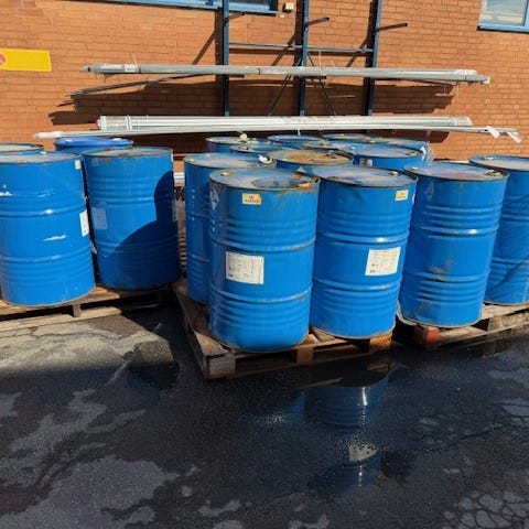 Mjölkspann / Mjölktunna i metall med kran i nederkant. Tunnan har två handtag på sidorna för enklare förflyttning. Passar för förvaring eller hantering av vätskor, exempelvis i lantlig miljö eller som praktisk behållare i trädgård eller förråd.