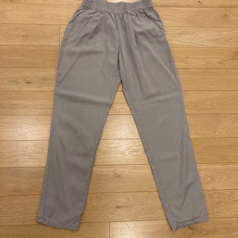 Gråa byxor med resår i midjan och uppvikta benslut. Byxorna har en avslappnad passform.