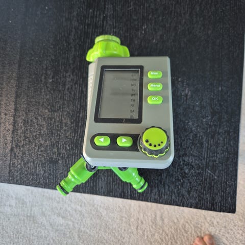 Bevattningstimer som inte längre behövs. Köptes förra sommaren och bara använd en vecka när vi var bortresta. Perfekt skick. Inklusive Gardena-koppling på utloppet.