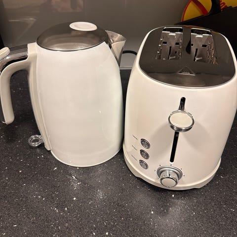 2 rostbröd, brödrost, bra skick, rostar bra, vattenkokare som kokar bra. Inga fel på, tröttnat på krom i köket:) säljer båda ihop
