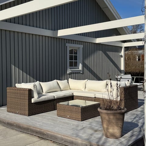 Vi har haft den uppdelad i en 3-sittssoffa och en schäslong