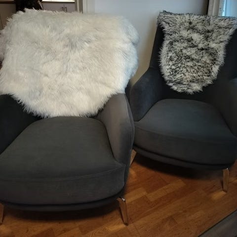 Lösavbart överdrag som behöver kemtvättas. Fotöjerna säljs ihop för 3000 kr.
