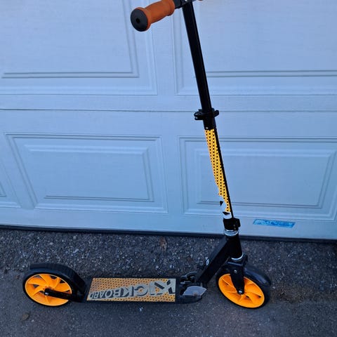 Kickbike, rejäl modell med 145 mm hjul. Köpta på Stadium. Det finns tre stycken. Pris per styck 125 kronor alla tre för 300 kronor tillsammans ( då ingår även ett kit extrahjul)