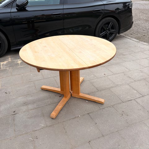 Runt utdragbart matbord Ø120 – massiv björk – 2 iläggsskivor