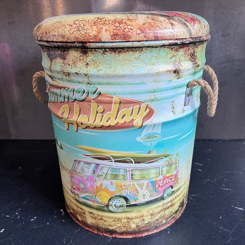 En hopfällbar pall, liten och lätt.