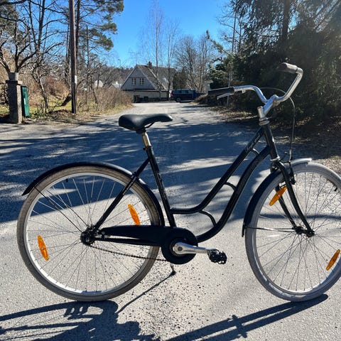 Fin Yosemite med tre fungerande växlar och en bra fram & fot-broms. Utrustad med pakethållare, stänkskärmar och kjolskydd.