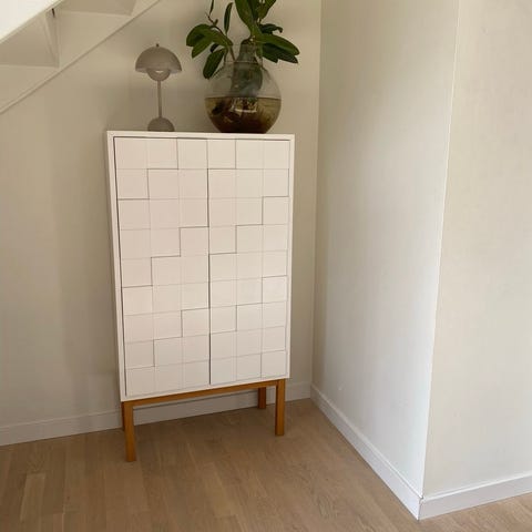 Dörrarna har jag dekorplastat men går lätt att ta av om man vill. Fint skick. Dörrarna är ljus grå, stommen vit.