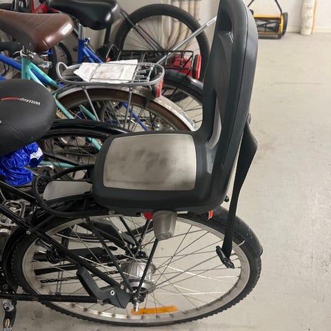 Bobike barnstol / cykelbarnstol som monteras på cykelns ram. Lite smutsig och ytrost men fullt fungerande med alla fästen.