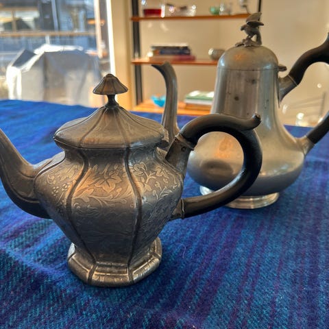 Innehåller kaffeserviser, diverse servisdelar, kristall, glas, prydnadssaker, väggtavlor, tenn, nysilver, tavlor, dukar, lampor mm.